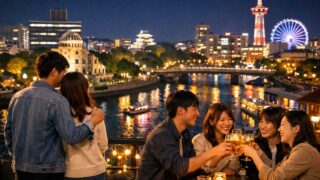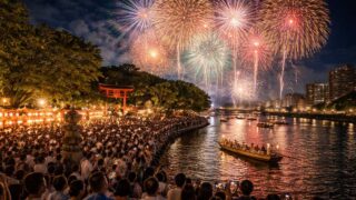広島の住吉祭り花火はどこで見える?住吉神社周辺の観覧エリアの選び方、川沿いのおすすめ立ち位置、混雑回避の動き方、場所取り・撮影の注意点を解説。
